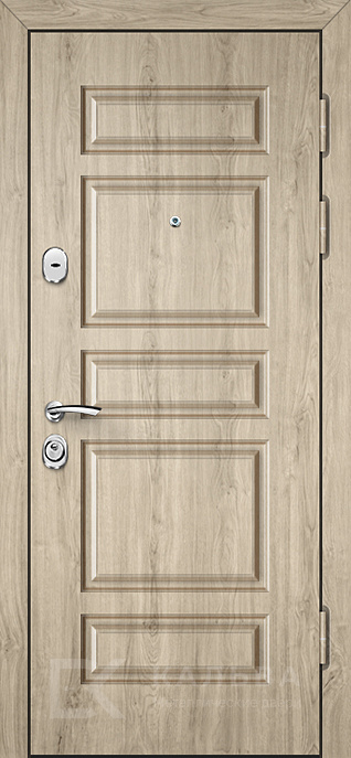 Фото «Стальная дверь светлый дуб с тёмной резной панелью №389»